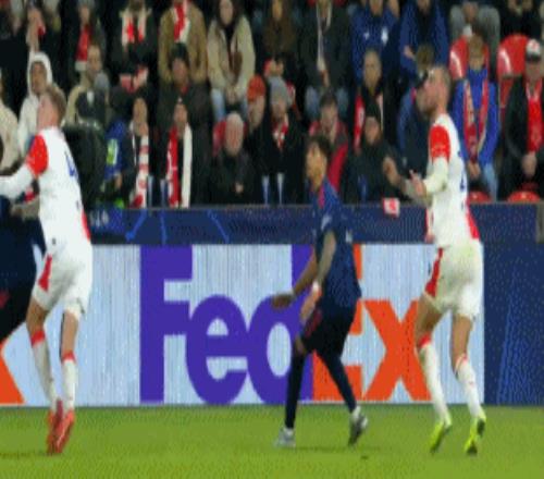 第45+4分钟,托马斯-绍里向主裁判抗议,紧接着又撞了因卡皮耶一下